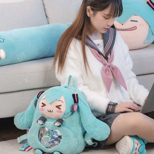 Official Moeyu Hatsune Miku Squinty-Eyes Plush Backpack – Cute Miku Mini Ita Bag