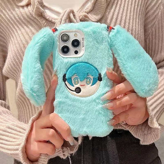 Hatsune Miku Plush Phone Case for iPhone 17 Pro Max/16/15 – Cute Warm Furry Cover