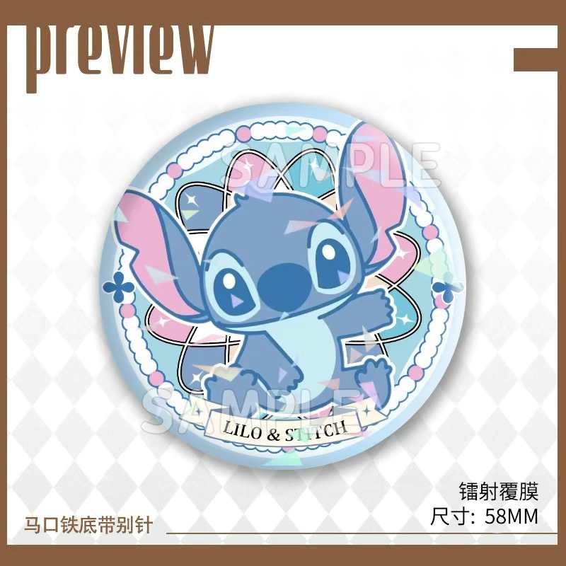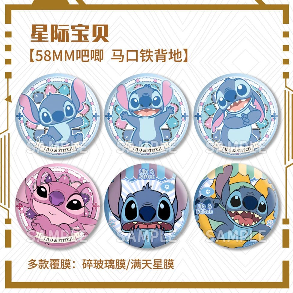Stitch & Angel Fan-Made Holographic Badge – Reflective Galaxy Broken Glass Style