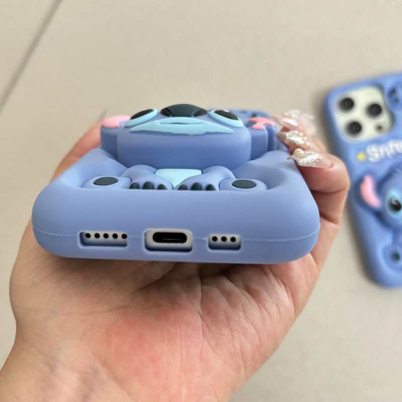 Stitch Full-Body Phone Case with Kickstand – Protective Cartoon Cover for iPhone 16/15/14/13/12/11 Pro