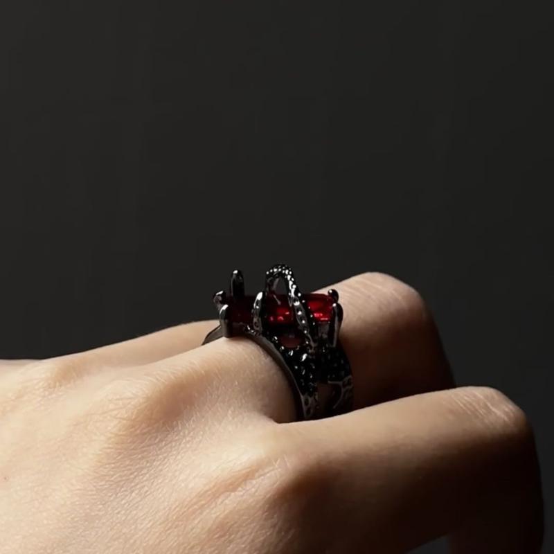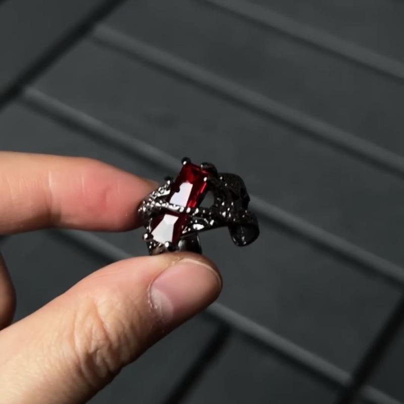 Sylus S925 Sterling Silver Open Ring – Gun Black & Red Gemstone | Luxury Vintage Punk Style for Men & Women